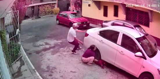 En las imágenes se observa cuando el niño se acercó al auto y se agachó debajo del auto aparentemente en búsqueda de un juguete. En ese momento el carro se echa en reversa y le pasa por encima y luego se queda quieto. El grito de otro niño pone en alerta a los padres, quienes tratan de sacar al niño. En ese momento el vehículo se mueve hacia adelante y vuelve a aplastarlo. Finalmente el papá saca al niño y se lo lleva en brazos.