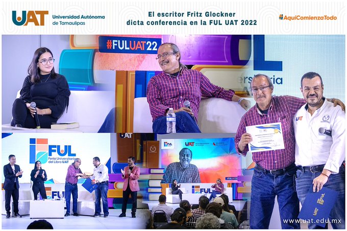 Luego de la presentación ante universitarios y público en general, el rector de la UAT Guillermo Mendoza Cavazos le hizo entrega a Fritz Glockner de un reconocimiento por su participación en la FUL UAT y agradeció al escritor la disposición de venir a Tamaulipas a compartir sus experiencias con los jóvenes universitarios.