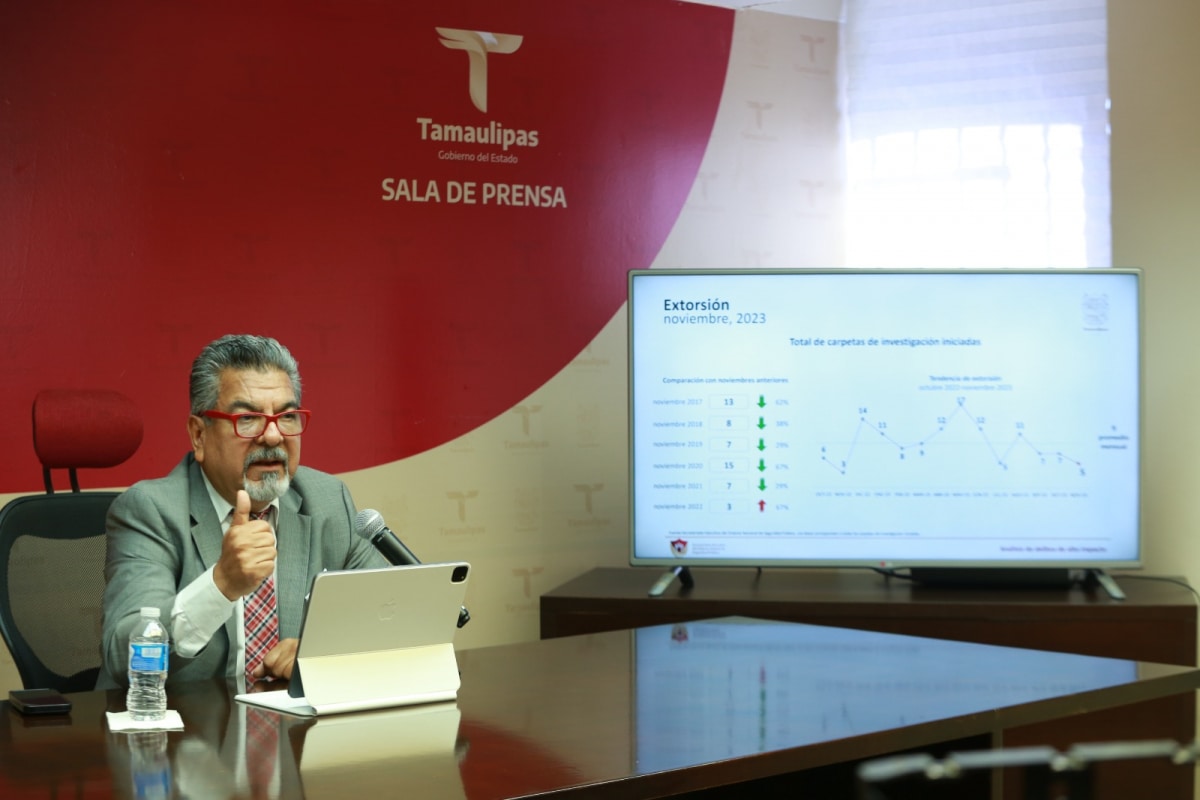 El vocero de Seguridad indicó que de acuerdo a las estadísticas correspondientes al mes de noviembre, Tamaulipas se ubicó en noveno lugar entre los estados más seguros del país y destacó que en cuanto al delito de homicidio doloso se registró el segundo mejor mes de noviembre en los últimos siete años, además de que por cuarto mes consecutivo no se presentó ningún secuestro en territorio tamaulipeco.
