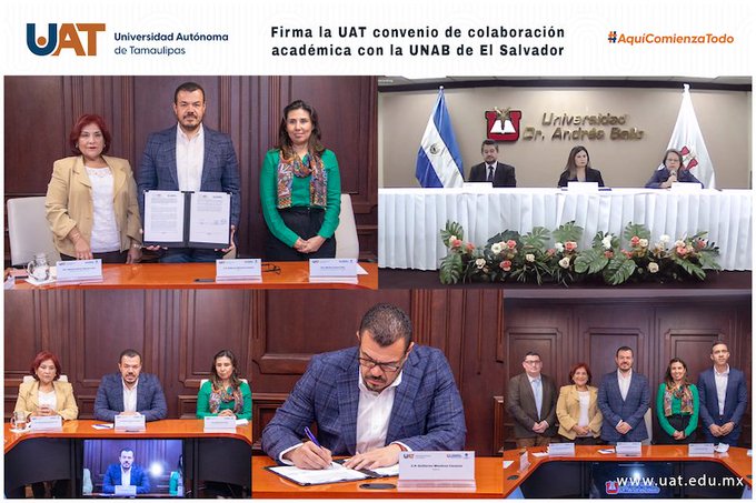 La Universidad Autónoma de Tamaulipas (UAT) y la Universidad Dr. Andrés Bello (UNAB) de El Salvador, establecieron un convenio amplio de colaboración que estrechará los lazos de amistad y cooperación estratégica internacional en beneficio de estudiantes, docentes e investigadores de ambas instituciones de educación superior.