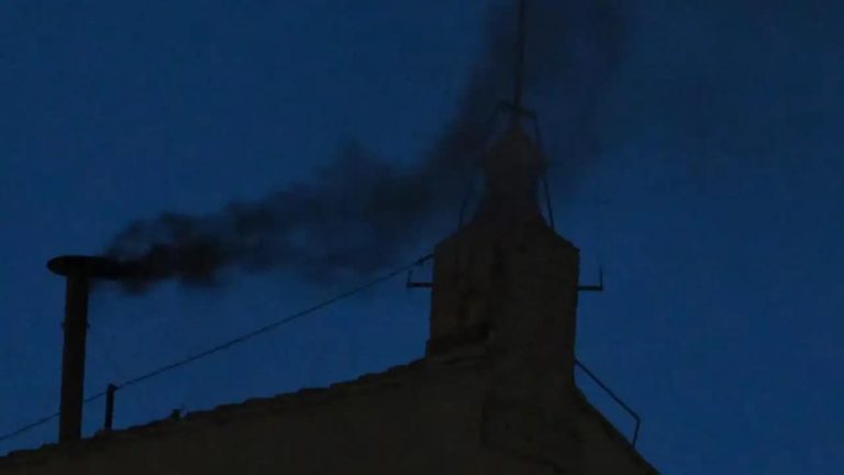 El humo negro comenzó a salir de la chimenea más de tres horas después de que empezara formalmente el cónclave.