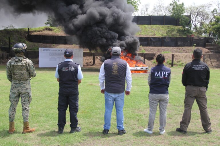 Ciudad de México.- La Secretaría de Marina–Armada de México, la Administración General de Aduanas (AGA) y la Fiscalía General de la República (FGR), en el marco del Plan Nacional de Paz y Seguridad, informan que hoy, en las instalaciones de la Décima Zona Naval se llevó a cabo la incineración de 545.97 (quinientos cuarenta y cinco punto noventa y siete) kilogramos de clorhidrato de cocaína, contenida en 481 paquetes tipo ladrillo, producto de los diversos aseguramientos realizados durante el primer semestre del presente año en el puerto de Lázaro Cárdenas, Michoacán.