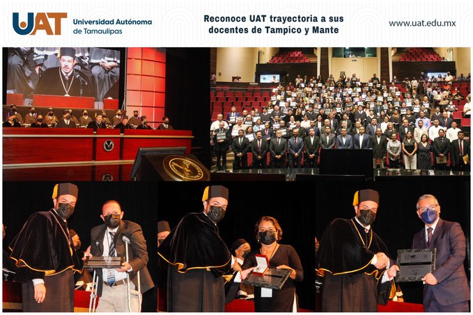 El C. P. Guillermo Mendoza Cavazos, Rector de la Universidad Autónoma de Tamaulipas (UAT), presidió la Entrega de Reconocimientos a la Trayectoria Docente al personal académico del Campus Tampico y de Ciudad Mante que han cumplido hasta 50 años de labor ininterrumpida al servicio de la casa de estudios.