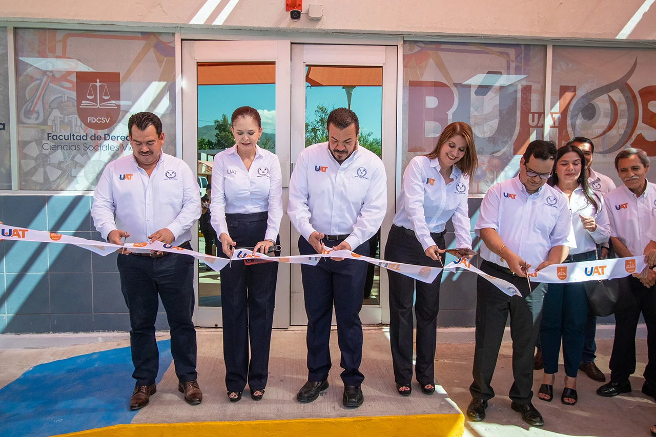 El rector de la máxima casa de estudios, Guillermo Mendoza Cavazos, visitó la Facultad de Derecho y Ciencias Sociales Victoria (FDCSV), donde entregó equipo de cómputo, inauguró la remodelación de diversas áreas y puso en marcha nueva infraestructura que fortalecerá los servicios educativos de este plantel universitario.