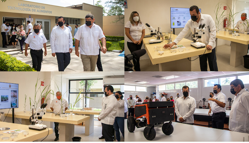 En el Laboratorio de Alimentos constató el equipamiento del taller de productos lácticos que permite la colaboración de carreras como Ingeniero Agrónomo, Ingeniero Bioquímico Industrial y Licenciado en Nutrición y Salud Integral, que trabajan en conjunto para la elaboración de diversos tipos de alimentos, fortaleciendo la investigación y prestación de servicios a la comunidad.