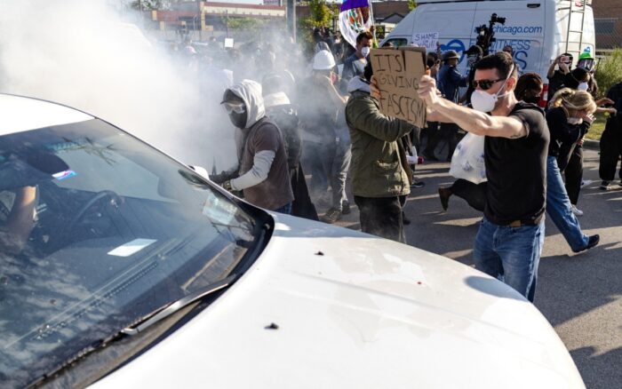 En un comunicado, el DHS afirmó que había más de cien personas en la protesta, aunque un video del canal CBS News Chicago mostró solo unas pocas docenas. Dijeron que los manifestantes agredieron a las fuerzas del orden, lanzaron gases lacrimógenos, pincharon neumáticos y bloquearon la entrada del edificio, calificándolos de “alborotadores”.