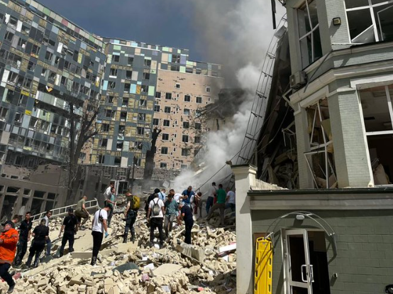 Un hospital infantil situado en el distrito de Shevchenko del centro de Kiev sufrió el impacto de un misil ruso que destruyó uno de los edificios de la infraestructura y provocó daños en otras alas del centro médico.